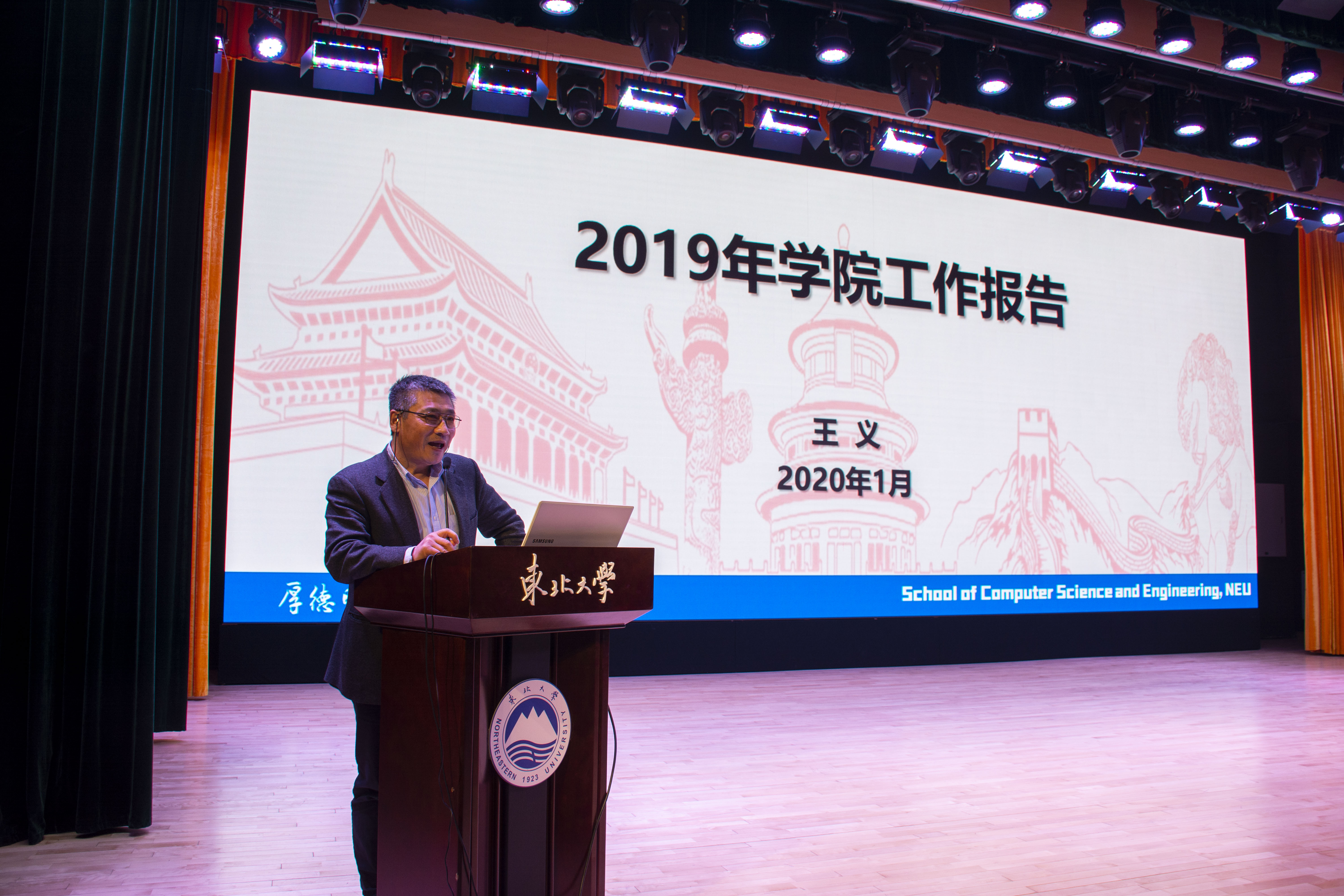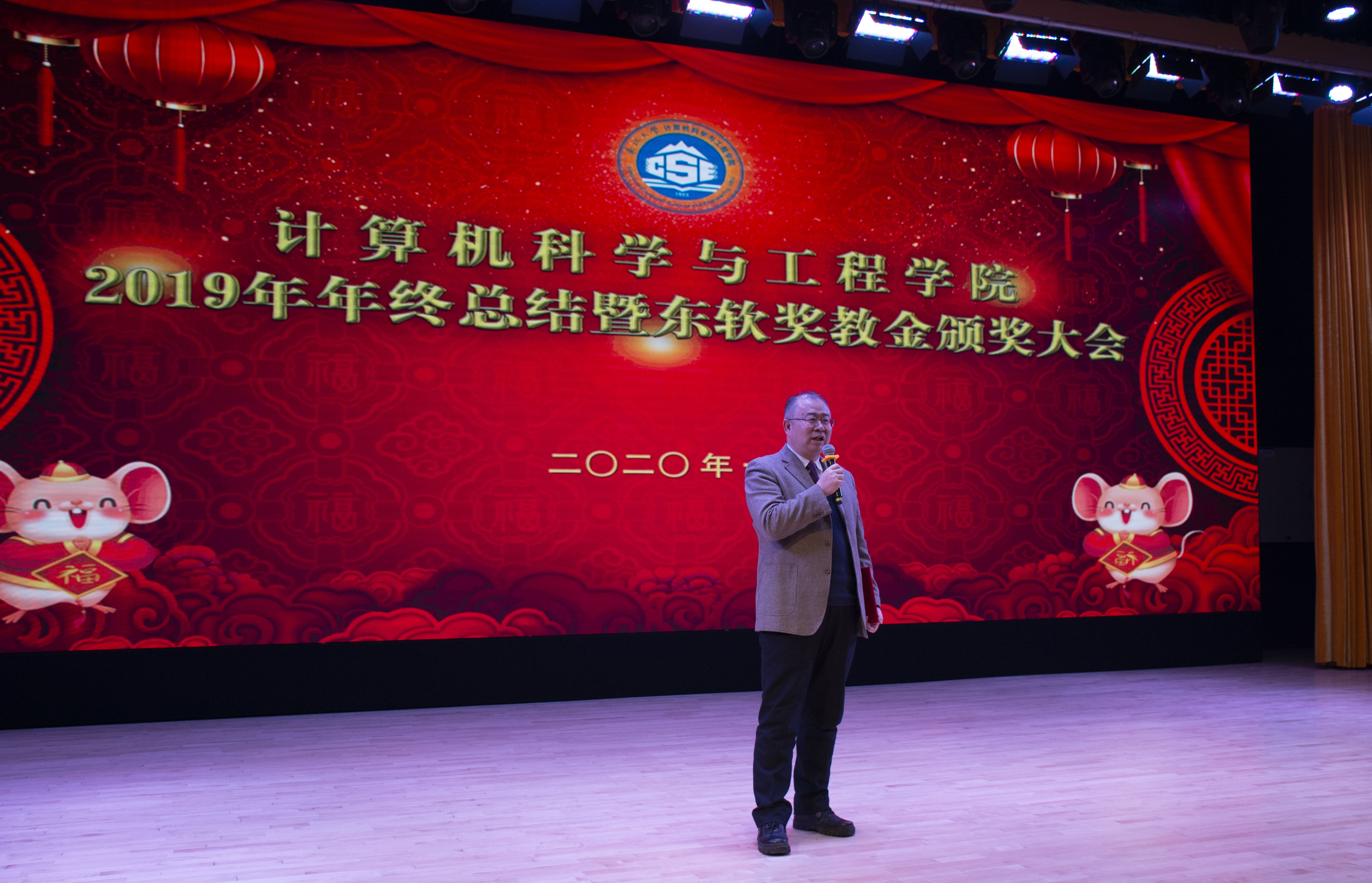 1月7日下午,计算机学院2019年年终总结暨东软奖教金颁奖大会在浑南校区图书馆报告厅举行。东软研究院副院长史卫国、东软研究院人力总监韩冬梅以及学院领导班子全体成员、全院教师、学生代表共计300余人参加了大会。