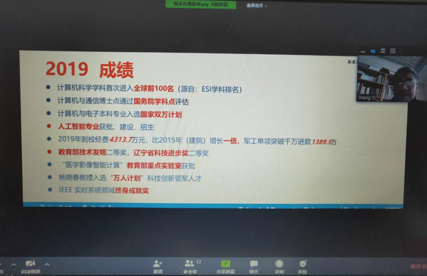 王义表示,2019年学院取得了“计算机学科首次进入全球前100”、“人工智能专业获批、建设、招生”、“医学影像智能计算教育部重点实验室获批”等一系列成果和突破,与此同时,学院和学科也有许多方面需不断强化。他指出,2020年学院将着眼于第五轮学科评估、双一流建设、计算机软件国家工程中心评估、计算机国家级实践教学示范中心建设等方面,围绕重点重大成果的培育、各类基地实质性建设、“四金一新”建设、研究生管理规范化、管理机制完善与落实等重点工作,落实学院学科建设、科研管理、人才培养、国际化、队伍建设、学生管理等六个方面的工作部署。