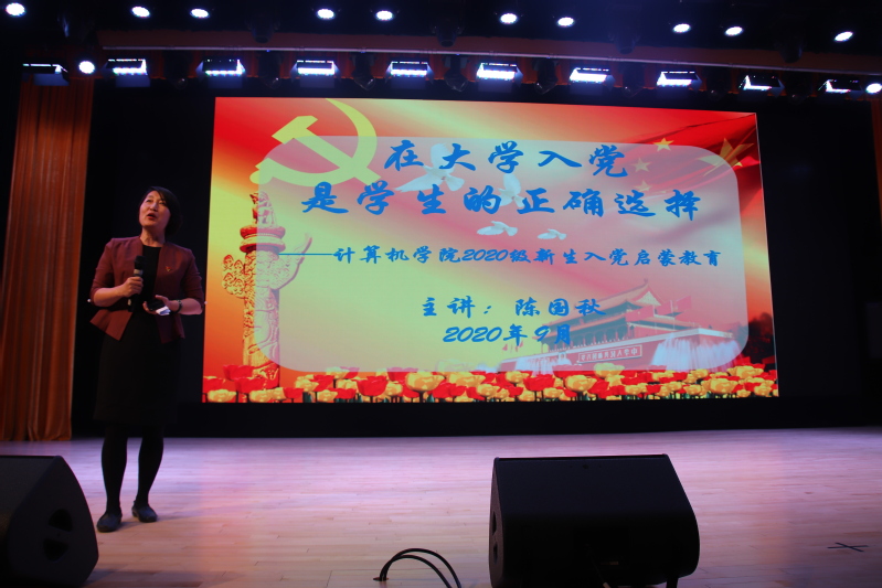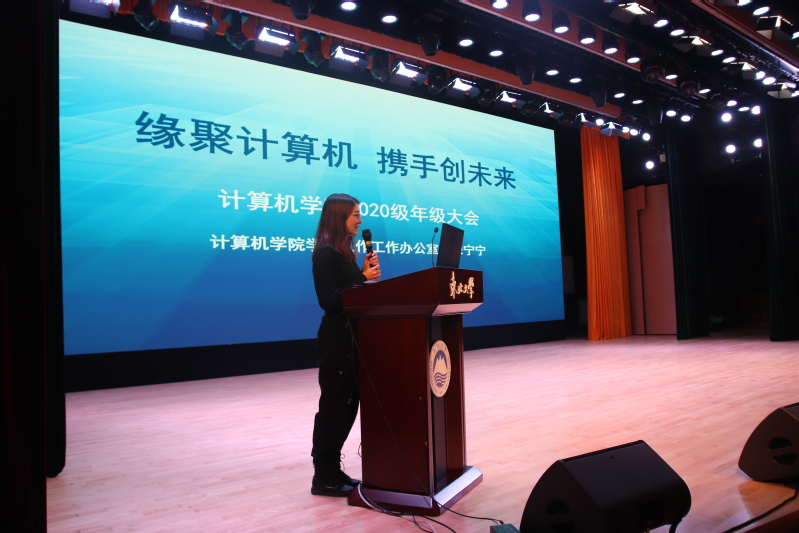 9月27日下午,我院在浑南校区图书馆报告厅举办“缘聚计算机,携手创未来”——计算机学院2020级本科新生成人礼暨“开学第一课”主题教育。学院党委组织员陈国秋、教学科研办公室张力航、2020级本科生辅导员以及全体2020级本科生参加了本次大会。会议由2020级本科生辅导员宋宁宁主持。