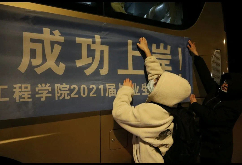 考生送考服务:我院毕委会于考研两日当天开展考生送考服务工作。期间,毕委会工作人员全程跟车,准备考研备用物资,提供午休开空调暖车、班车签到、线上提醒等服务,以确保乘车考生“一个不落”、服务工作“一丝不苟”、送考过程“一帆风顺”。