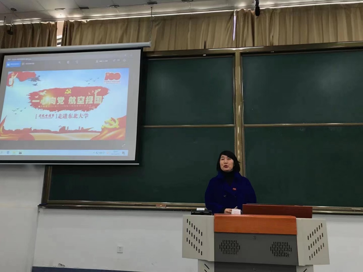 首先,出席本次宣讲会的老师和同学们一起观看了《沈飞辉煌之路》的宣传片,通过宣传片,大家对航空工业沈飞有了大致的了解,随后由宣讲员刘佳讲述了沈飞创业之路,讲述中让同学们初步了解了罗阳同志一直以来的“航空报国”志向。接着,宣讲员播放了《习近平讲述的故事》短片,更全面地介绍了罗阳同志为我国航空事业发展作出的突出贡献。短片之后,薛海梅、赵丹袆两位宣讲员分别讲述了“罗阳同志的两件事”和“用生命践行航空报国的罗阳”。2012年11月25日12时48分执行任务时,罗阳突发急性心肌梗死、心源性猝死,经抢救无效,在工作岗位上因公殉职,终年51岁。2012年,罗阳同志获得感动中国年度人物。丰富的图片和纪录信息让同学们更加深刻地了解到罗阳同志是一位“不忘初心、牢记使命”的优秀共产党员代表,是新时代强军梦,中国梦的忠实践行者!最后,宣讲团对东大给予的支持表示感谢,并指出沈飞与东大有着历史上的渊源,欢迎年轻一代学子加入沈飞,努力实现时代赋予的使命,共同祝愿祖国航空事业的发展越来越辉煌。