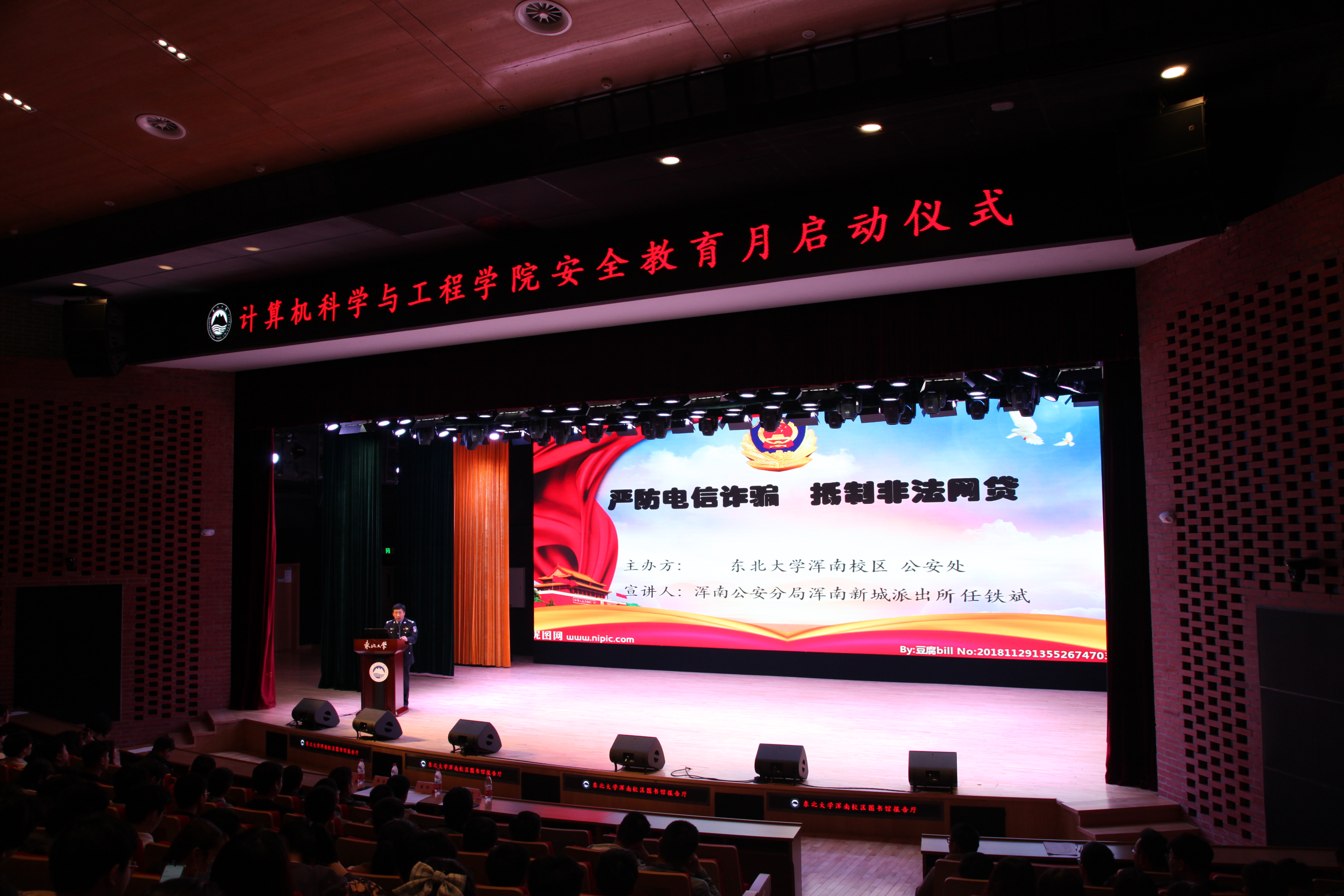 2021年4月21日,我院联合必赢线路检测3003公安处于图书馆报告厅召开“安全你我,和谐校园”安全教育主题月活动启动仪式。浑南新城派出所任铁斌警官、公安处副处长王克新、浑南秩序管理科科长沈建楠、副科长刘雨以及计算机学院全体辅导员出席此次活动。