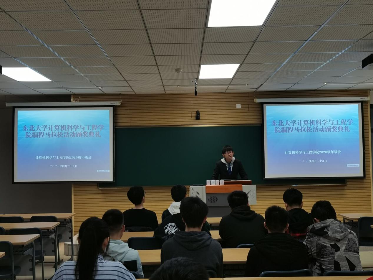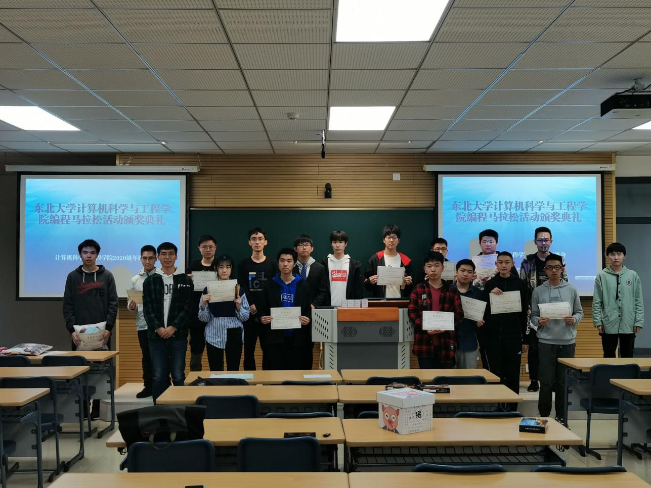 2021年4月29日晚,我院编程马拉松活动颁奖典礼在1号教学楼B115教室召开。出席本次活动的有2020级兼职辅导员马梦宇、2020级年级会主席曲汉岳、编程马拉松活动出题组成员以及全体获奖同学。