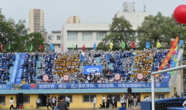 “厚德明理,兼容惟新,百年辉煌,续写华章”,学院师生入场式队伍迈着整齐的步伐,喊着嘹亮的口号,彰显了计算机人蓬勃向上、斗志昂扬的精神风貌。观众方阵组成“I❤ CSE”字样为赛事鼓劲加油,啦啦操方阵表演活力四射,引起阵阵欢呼。在全体师生的共同努力下,学院最终荣获体育道德风尚奖。