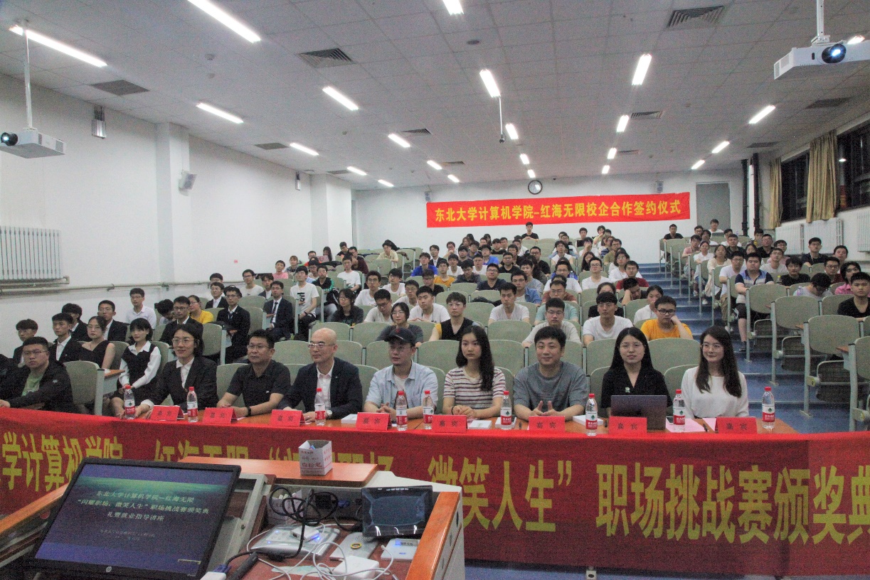 6月10日,我院在信息学馆A109教室举办了计算机学院-红海无限“闪耀职场,微笑人生”职场挑战赛颁奖典礼暨就业指导讲座,红海无限科技发展有限公司合伙人吴鹏飞、校企合作负责人吕博斯、HR田爽、郭梦甜莅临现场,学院党委副书记兼副院长聂国东、学办主任梁媛、团委书记李东海及各年级辅导员参加仪式。
