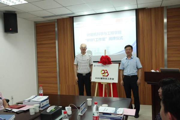 会议随后进行了学院“0101工作室”成立仪式。学院“0101工作室”是以习近平新时代中国特色社会主义思想为指导,以“学科优势,人才培养,思政尖兵,下沉一线”为主题,意在充分认识计算机工科本硕博学生群体的思想行为特点及成长发展规律的基础上,设计、实施更具有针对性、实操性和可评价性的思想政治教育工作项目。其主要职能包括:辅导员工作项目化统筹和运营、学院二级心理咨询站建设、谈心谈话督导、辅导员德育科研专项等。工作室聘请马克思主义学院副院长任鹏担任思政理论专家顾问。马天威与聂国东为工作室揭牌。