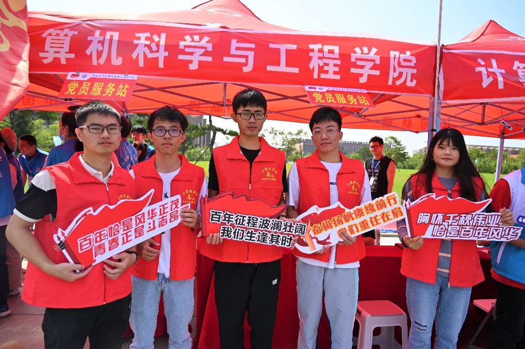 学院充分发挥学生党员的先锋模范作用,引导广大党员同学在志愿服务中锻炼工作能力,扛起责任担当,践行初心使命。计算机学院“春风”学生党员志愿服务队在迎新场地设置的“学生党员服务站”岗位上,活跃在各个迎新服务点,以饱满昂扬的精神风貌投入到迎新志愿服务工作之中。为前来报到的新生提供绿色通道、问题咨询等便捷服务。
