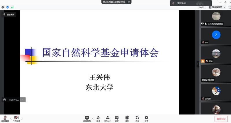 会上,王兴伟教授通过国家自然科学基金申报和评审体会,就申请基金的意义、项目类型、分类评审、选题、申请书撰写、基金评审基本过程、基金申请中的技巧等方面进行详细讲解。王兴伟强调,国家自然科学基金对青年教师的科研成长和发展、对学院的一流学科建设都具有非常重要的作用和意义,一定要结合自身研究方向,将实际需求凝练成理论问题,不断优化撰写方法,找准创新点,精雕题目,厘清摘要,鼓励学院内部交叉评审、相互学习,力争提交一份高质量、高标准的基金申请书,并预祝申请教师取得好成绩。
