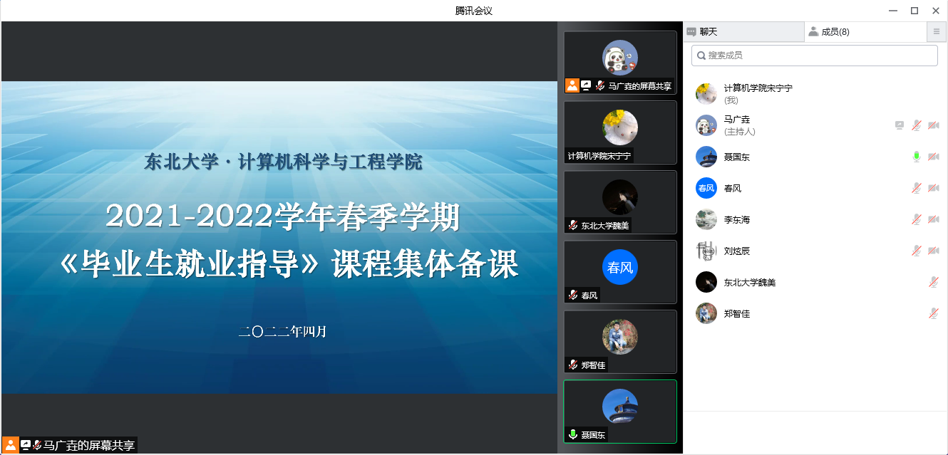 4月24日,我院学生工作办公室通过腾讯会议平台线上召开2021-2022学年春季学期《毕业生就业指导》课程集体备课会,学院党委副书记、副院长(兼)聂国东、学院《毕业生就业指导》课程授课教师、2018级、2019级本科生辅导员参加会议。
