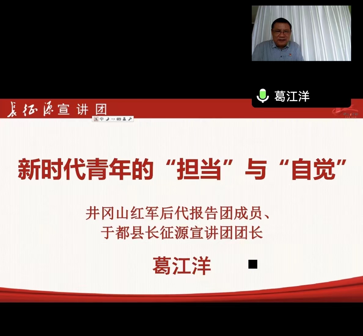 葛江洋原沈阳军区房管局党委书记(副师职),大校军衔,曾为中共党史人物研究会井冈红军人物分会会员,辽宁省党史报告团成员,现井冈山红军后代报告团成员,并担任于都县长征源宣讲团团长。此次报告会中,葛江洋围绕“担当”与“自觉”,以大量鲜活的人物故事深刻诠释两个关键词,在纪实事例中引导学生践行社会主义核心价值观“爱国、敬业、诚信、友善”。同时,葛江洋鼓励学生们勇做走在时代前列的坚定者、奋进者、搏击者。“我们可能不会伟大,我们也做不成伟大的事,但是我们可以用伟大的心做事。用伟大的心做事,可以让我们的一生充实、饱满、富有和自豪”,葛江洋如是说。
