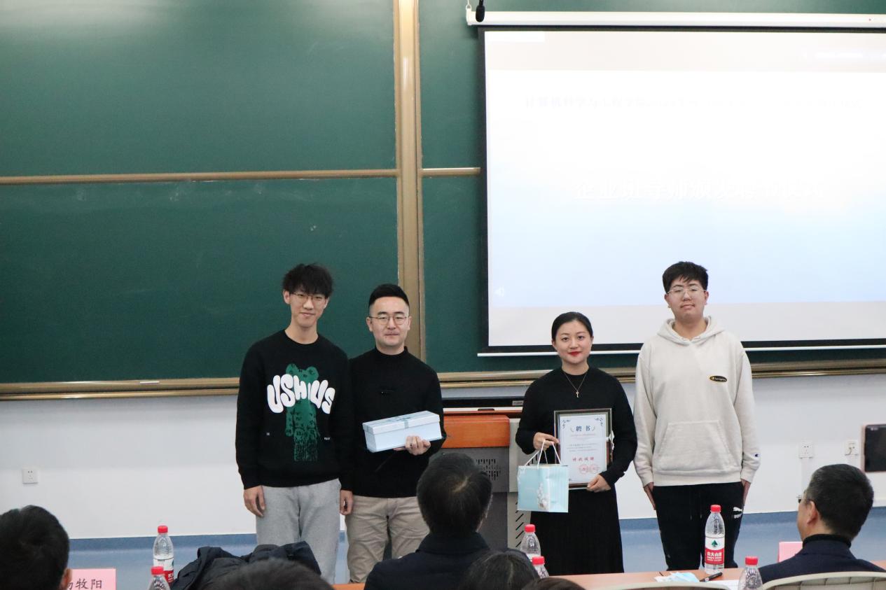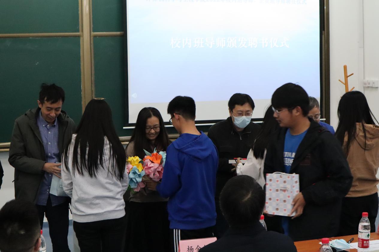 随后,杨金柱宣读《必赢线路检测3003关于调整2021级本科生班级班导师、在2022级本科生班级配备班导师的通知》《必赢线路检测3003关于在2021级、2022级本科生班级配备企业班导师的通知》。鲍玉斌、马国强、聂国东为到场的企业班导师及校内班导师颁发聘书,各班级代表为班导师献上亲手制作的“谢师礼”。