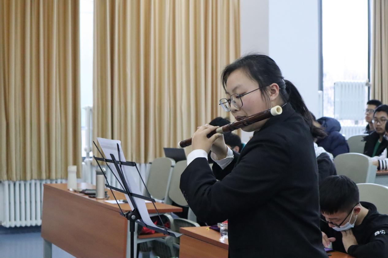 2022级本科学生代表表演了原创诗朗诵《“计”往开来,逐梦“企”航》,激昂的诵读伴随着现场悠扬的笛声,句句饱含着对班导师老师的崇敬和对学校、学院培养的感激。
