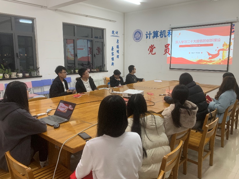 硕士2009党支部由支部书记崔旭旭作为党课主讲人,带领支部党员从坚持和发展马克思主义的指导思想、举什么旗,走什么路的根本问题、以什么样的精神状态踔厉前行、朝着什么样的目标继续前进四个方面进行党的二十大创新理论的学习。硕士2204党支部王亚倩、吴进、吴易嘉同志以“从23组关键词读懂党的二十大报告”为题,对23组关键词逐一讲原文、说解读。硕士2207党支部由支部书记李玉金从大会意义、大会主题、大会要点三个方面进行讲解,重点学习大会实施科教兴国战略、强化现代化建设人才支撑的要点,还采用知识问答的方式充分调动党员的积极性,引导党员进行思考。