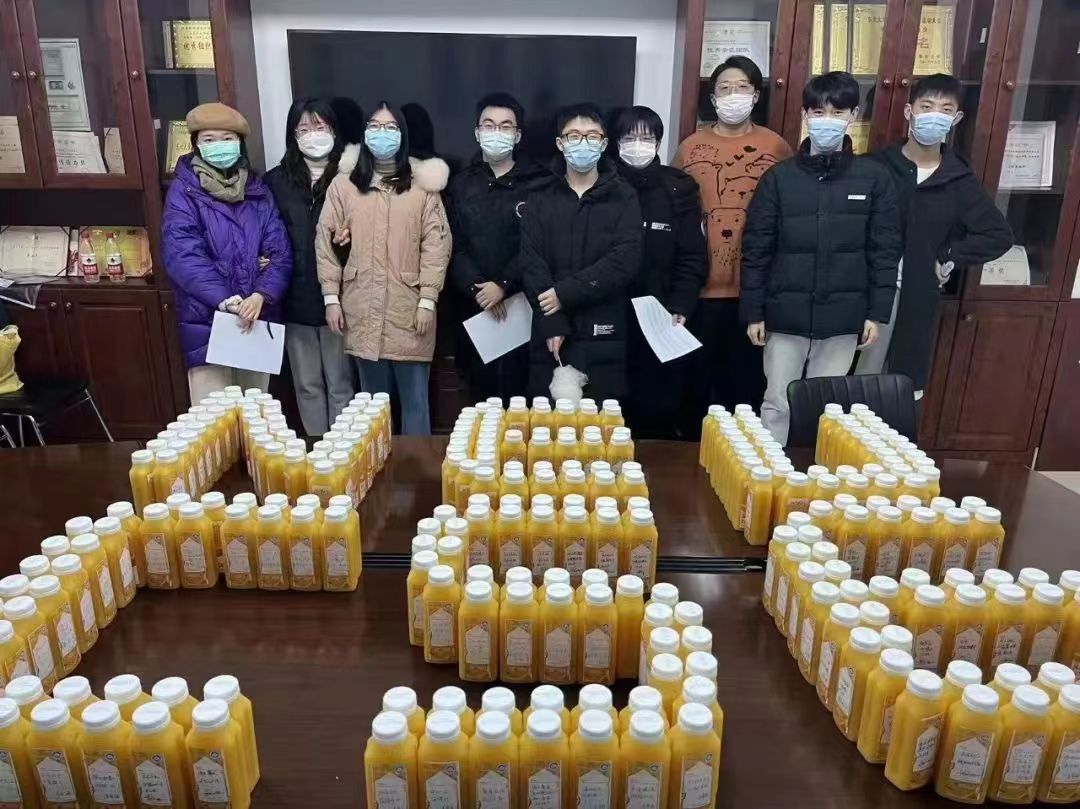 为了表达学院对考研学子的关心和祝福,学院为全体考研学子定制个人专属“橙汁”,寓意心想事“橙”。每瓶橙汁有每名考研学子的名字,以及由学院党委副书记兼副院长聂国东带领毕业生辅导员亲手书写祝福语的贴纸,定制橙汁和福袋由毕委会送至每位考研同学手中,并一同送上祝福和鼓励。