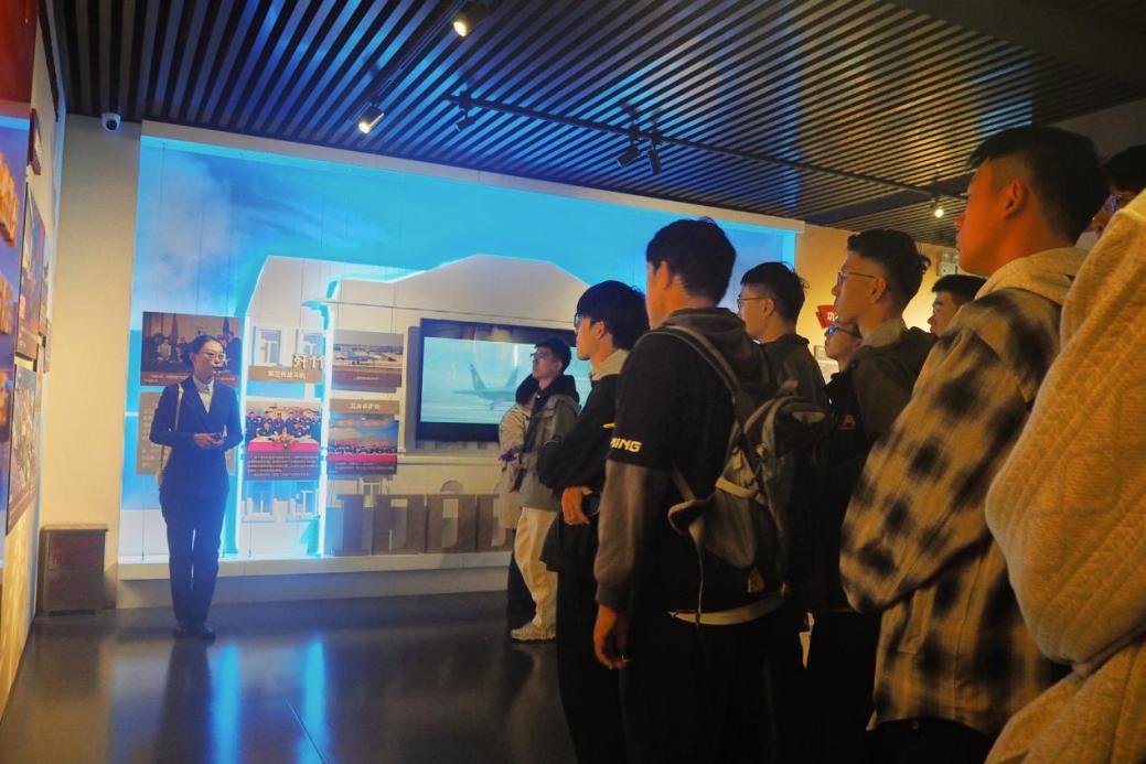 在历史展区,毛泽东同志“建设中国的强大空军”的题词与歼八战机首飞成功的报捷电报,共同展现了老一辈航空人自力更生、艰苦创业的奋斗历程,让同学们深刻认识到坚持党的领导是我国科技事业取得辉煌成就的根本保证。
