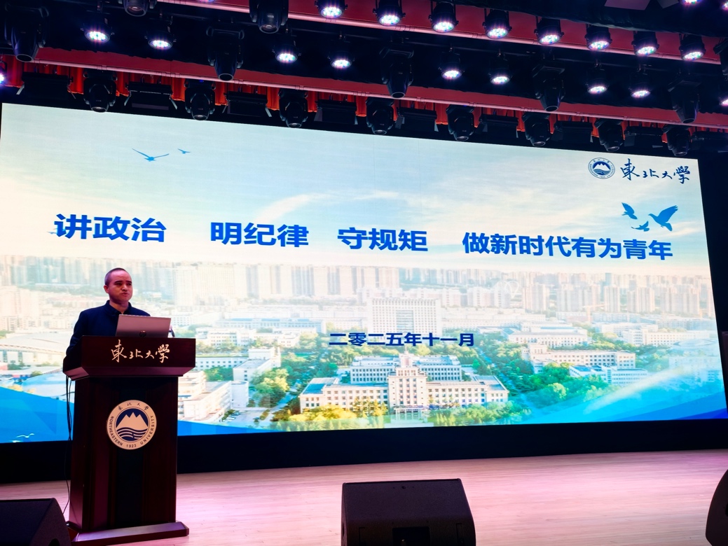 为深入学习贯彻落实党的二十大精神和中央八项规定精神,扎实推进青年学生廉政教育,引导新时代青年筑牢思想根基、强化纪律意识,11月27日,计算机学院学生党总支在必赢线路检测3003浑南校区图书馆泰山学术报告厅,组织全体学生党员同上一堂“讲政治 明纪律 守规矩 做新时代有为青年”廉政教育主题党课。本次党课由学校纪委办副主任夏风云主讲,学院全体学生党员、发展对象以及各班级班长团支书共同参与学习。