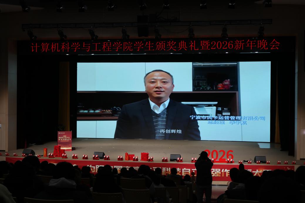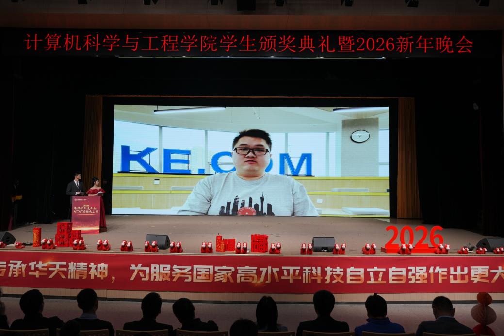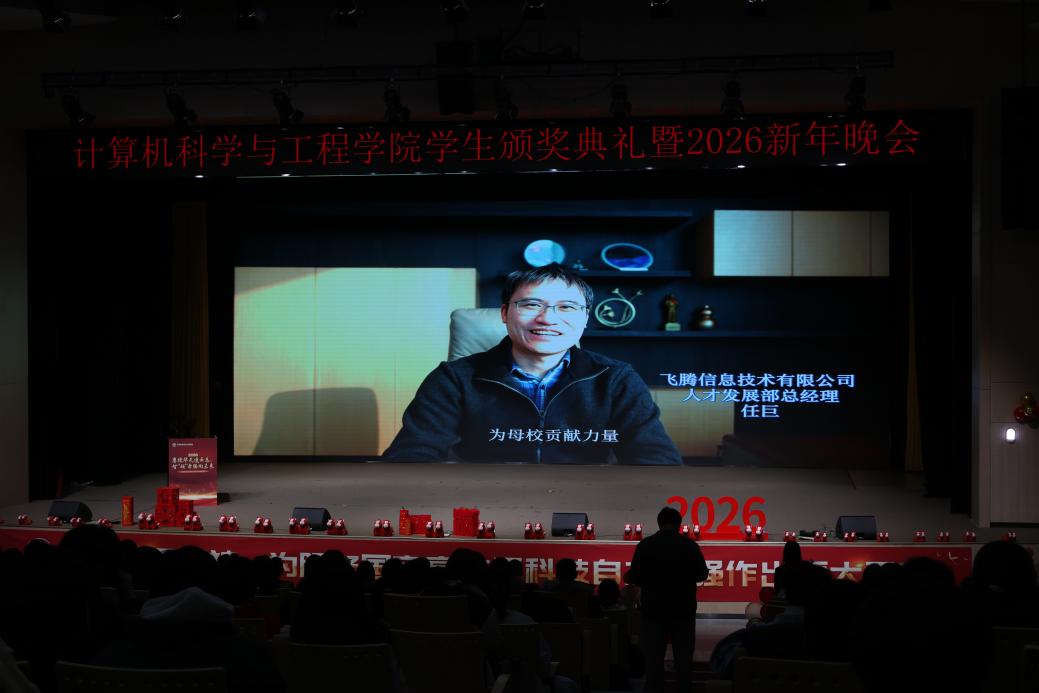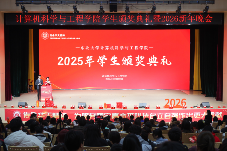 12月22日,计算机学院2025年学生颁奖典礼暨2026年新年晚会在浑南校区学生活动中心多功能厅举行。“99级计算机励志奖学金”捐资人代表、99级计算机校友刘莹,姚天顺奖助金捐资方代表、计算机学院人工智能系主任肖桐,计算机学院党委书记邸馗、学院院长及学院领导班子成员、部分教师、全体学生工作干部及学院本硕博700余名同学到场参加活动。典礼暨晚会全程通过“NEUCSE视频号”进行直播,累计观看人数超6200人次,点赞2.8万人次。